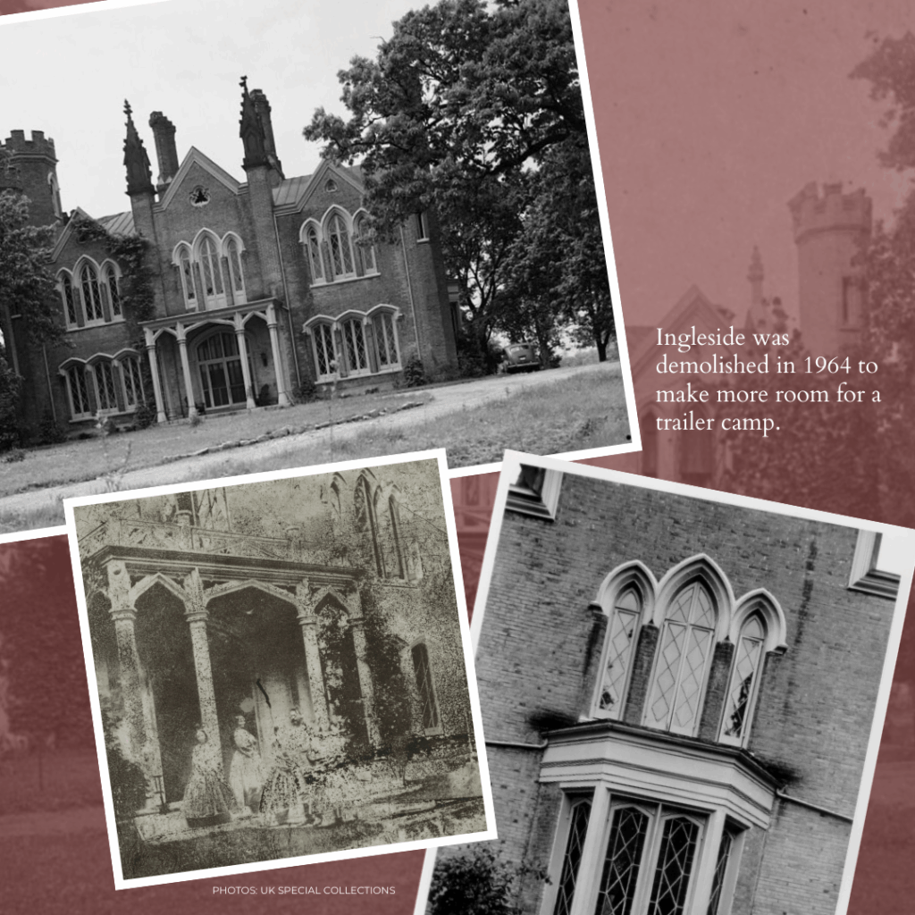 Recognize this building in any of its iterations? This unassuming office building is now the last vestige of a once great Gothic Revival estate. The castellated structure was originally the gatehouse for the remarkable “Ingleside.” Built by architect John McMurtry c.1852, it was once one of the finest examples of the Gothic Revival style in Central Kentucky.