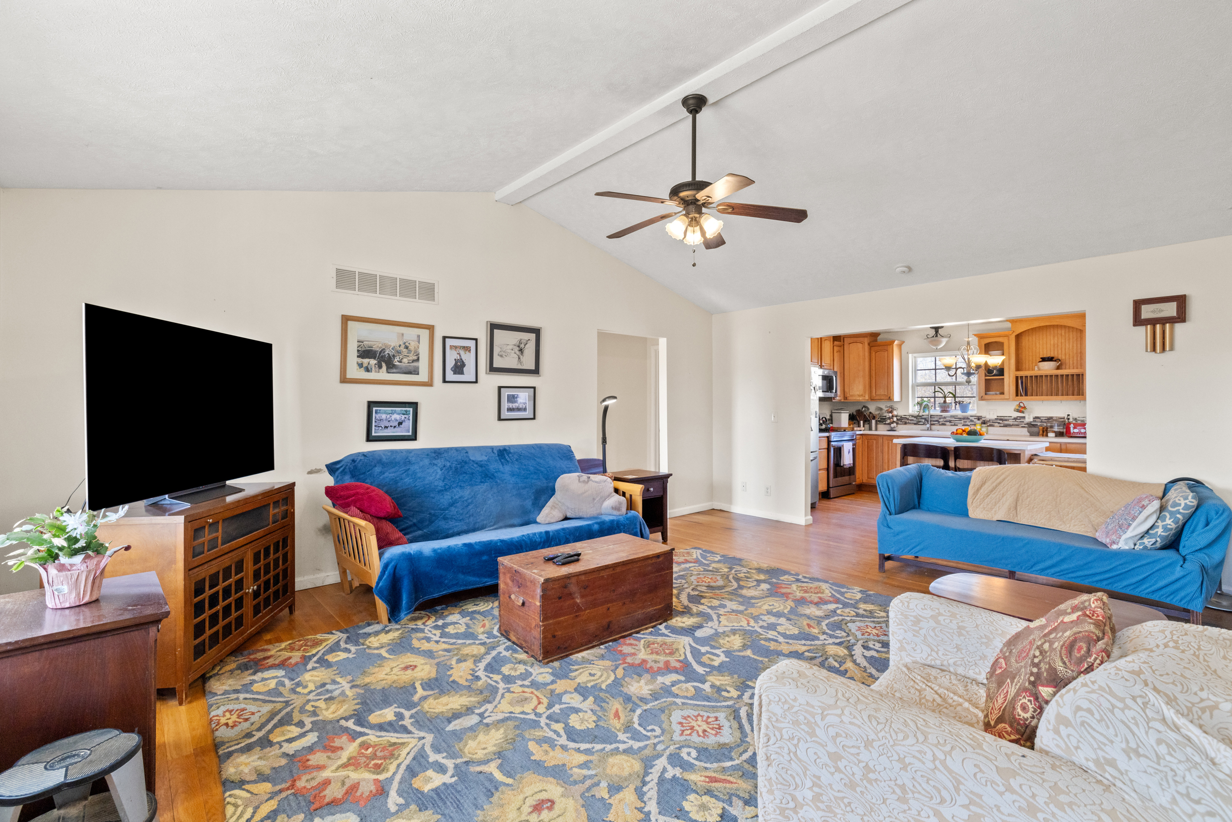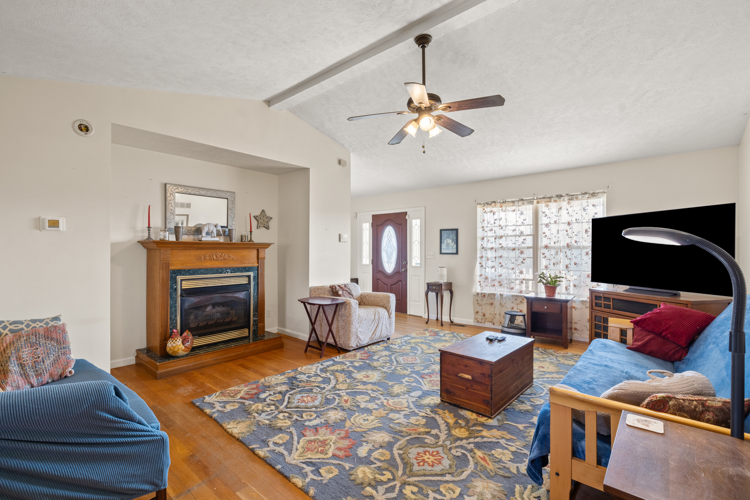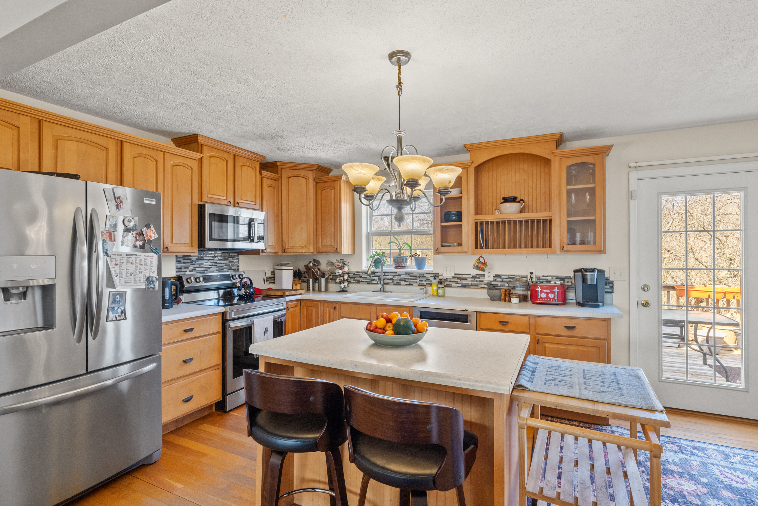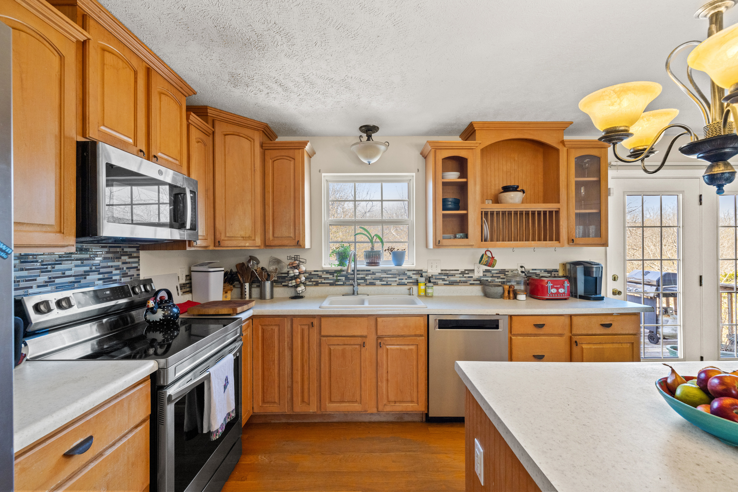 The home layout provides primary living on the main floor with additional rooms in the sunny walkout basement. Main level: the living room opens into the good size kitchen for easy living with a dining room as well, 3 bedrooms including the large size primary bedroom, 2 full baths & a utility room with hardwood flooring & tiles in the bathrooms & utility room. The walkout basement enjoys a large family room with area for a wood burning stove, bedroom & bath and a room that would be a great home office. Direct access to the patio & above ground pool, with a dreamy view, makes the basement a perfect entertaining area for friends & family.