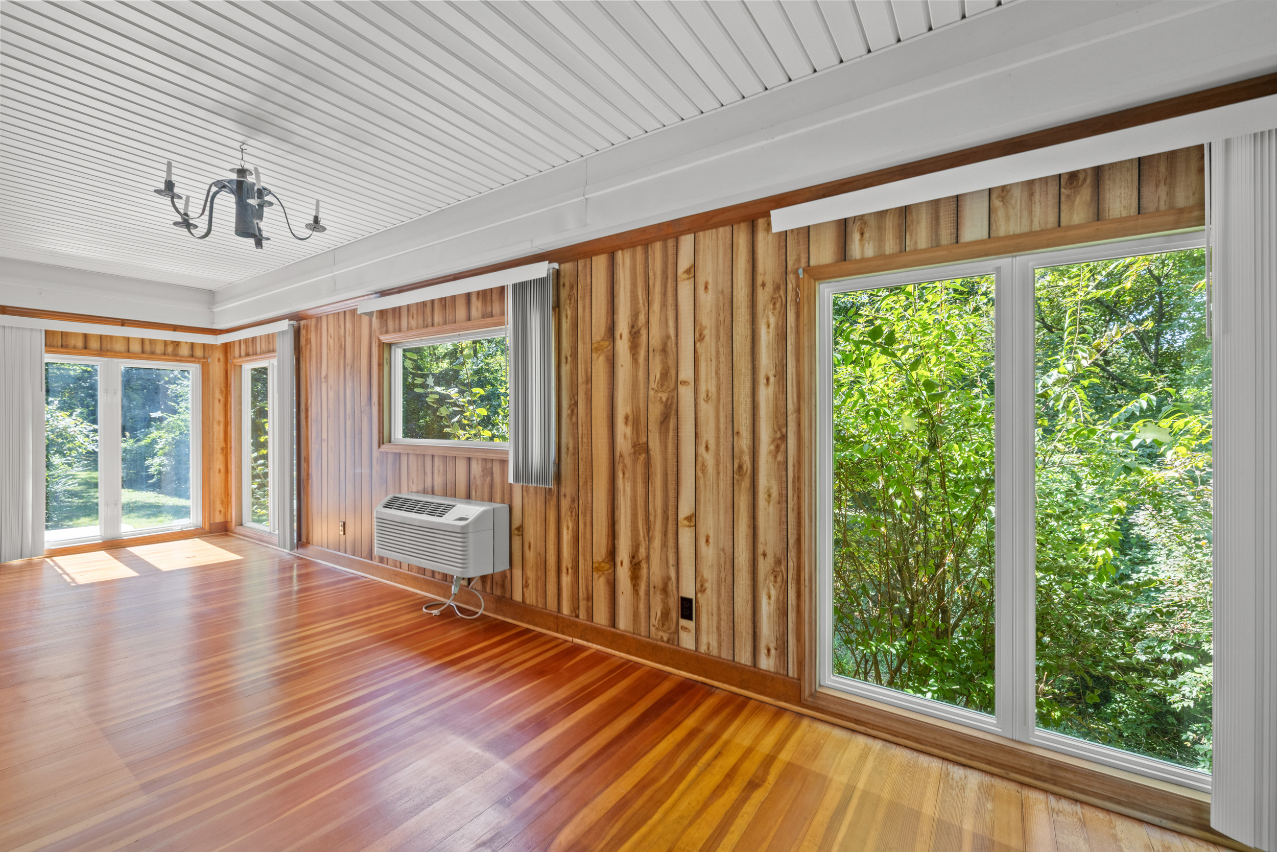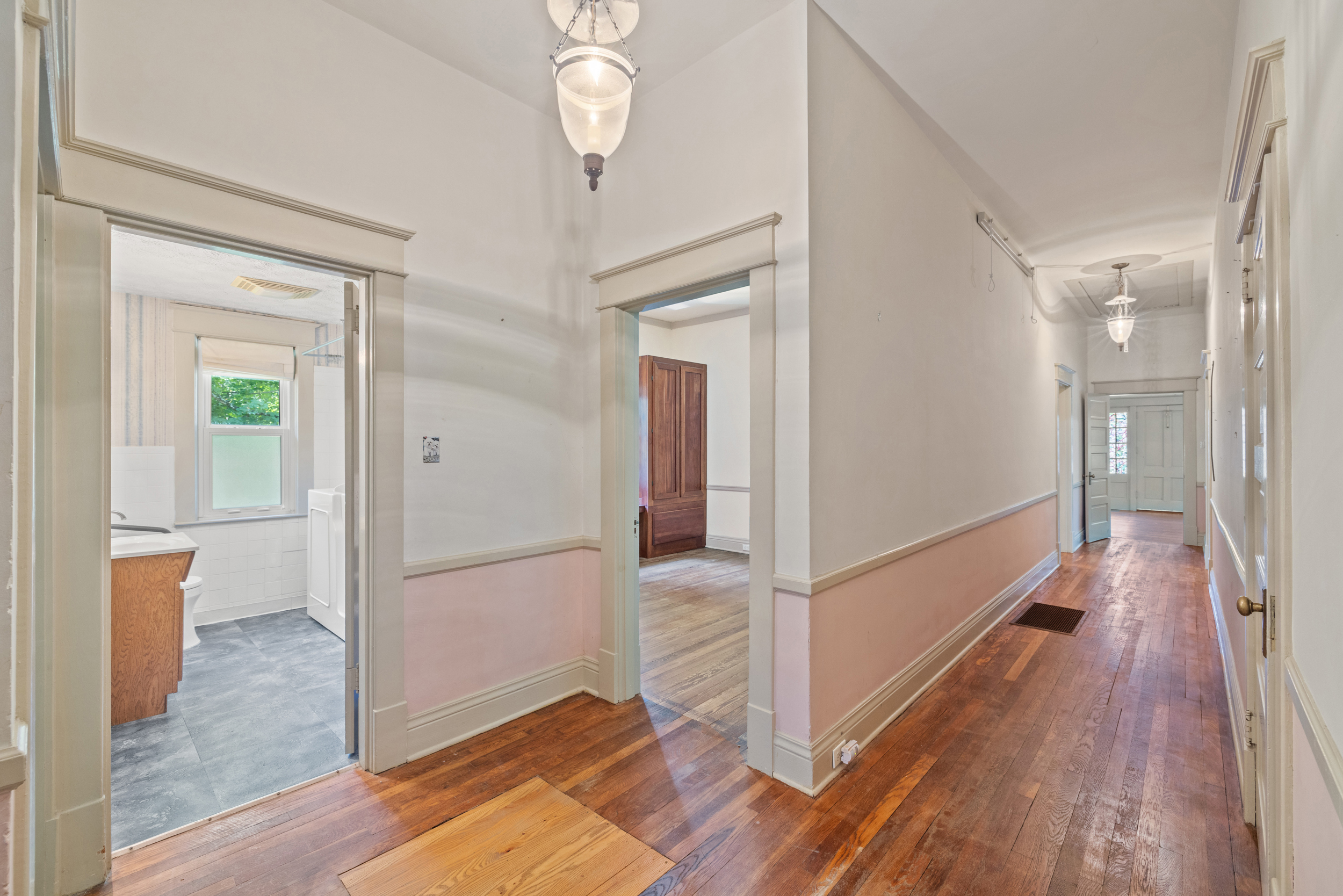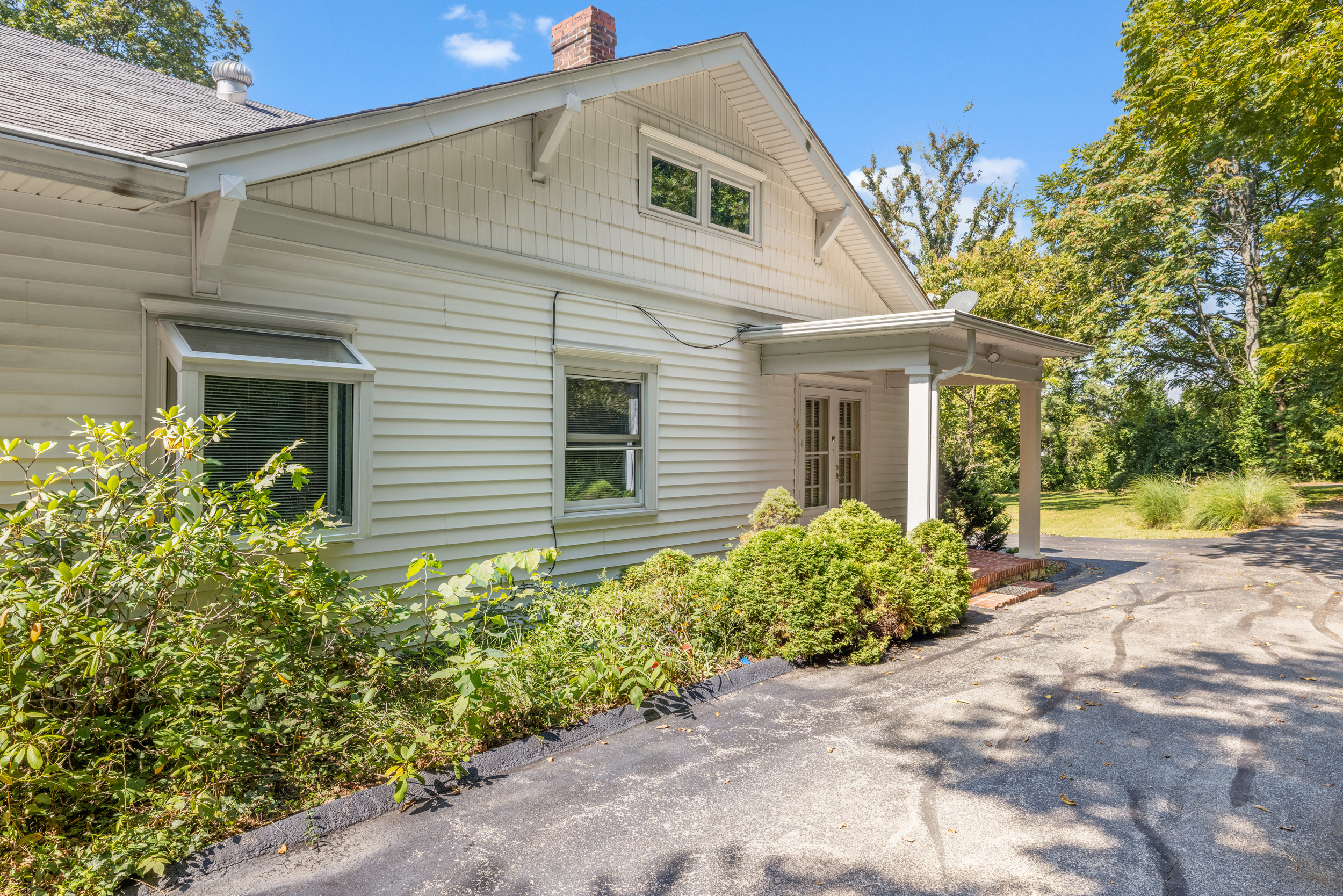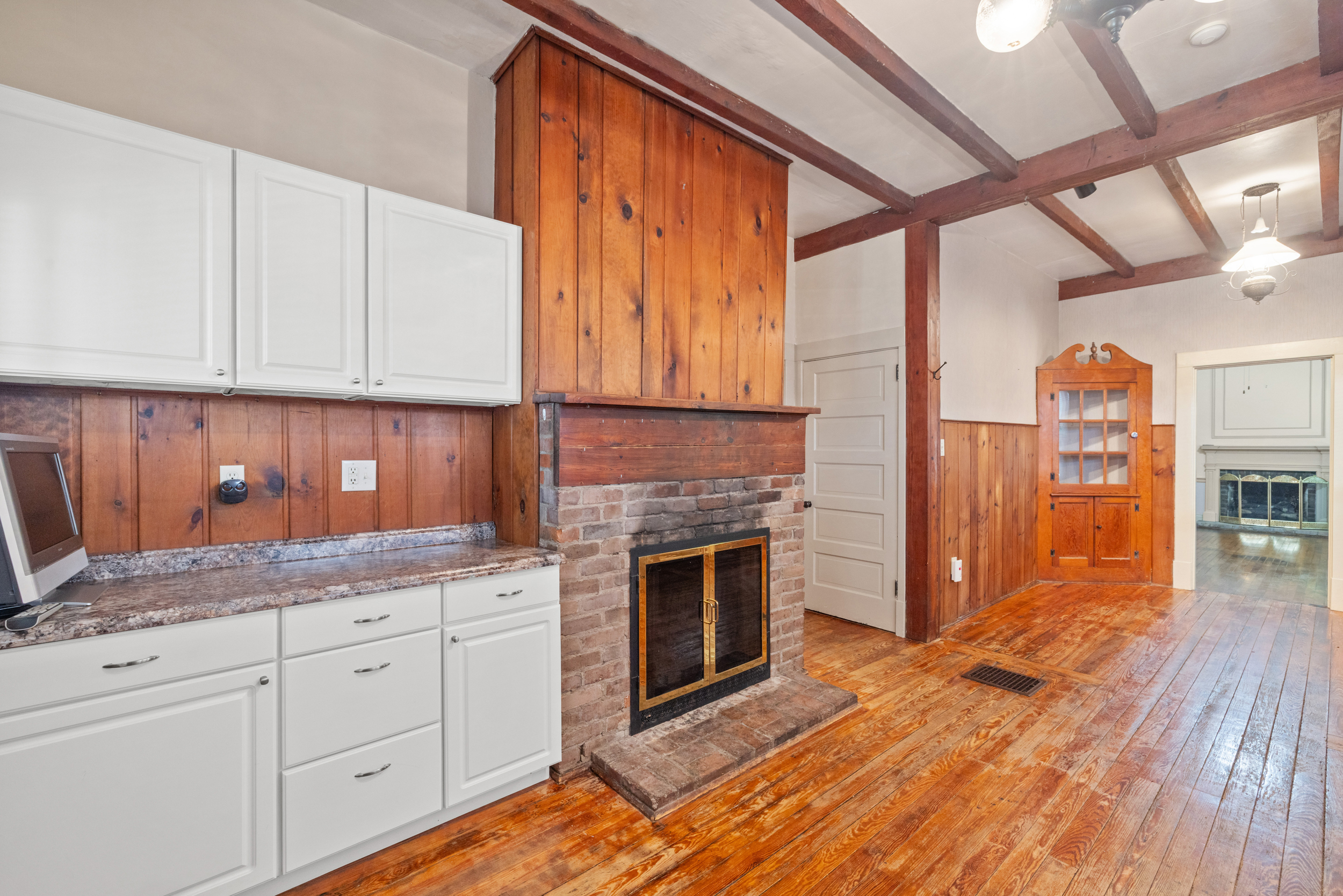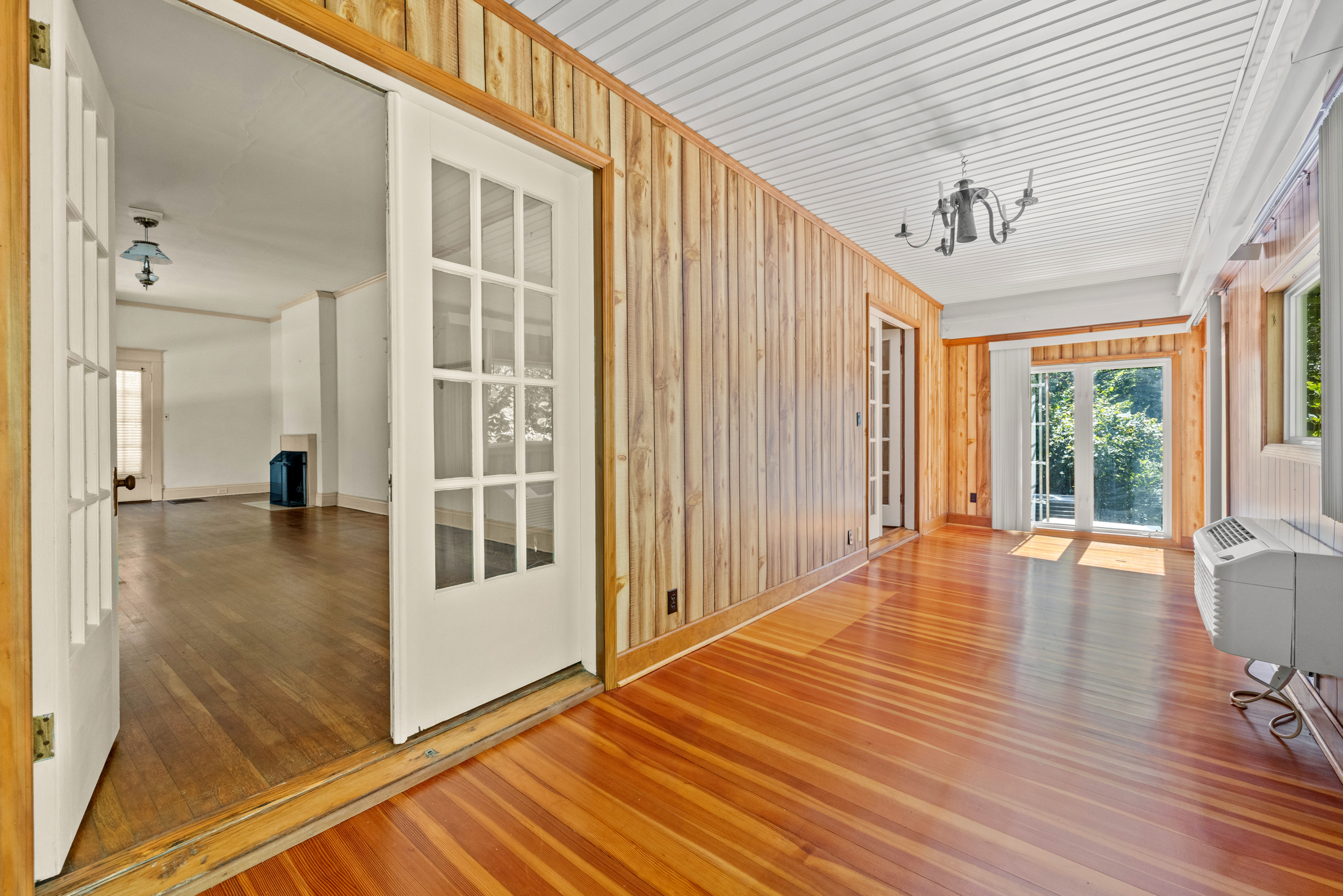 Sited on 2+ acres and at the end of a winding drive, the residence features both formal and informal spaces. A welcoming foyer and living room spans the width of the home with matching French doors and a fireplace. An adjoining sunroom is ideal for added light, particularly in the cooler months. The comfortable den is centered around a fireplace with shelving and has a garden-window. A wood-paneled breakfast room and kitchen offers updated cabinets and appliances alongside gas logs. The first-floor primary bedroom has beautiful built-ins with bucolic views. Original hardwood floors have been preserved throughout much of the home. Additional recent upgrades include HVAC (2025), water heater (2025), whole house generator (2021), and windows (2020).
