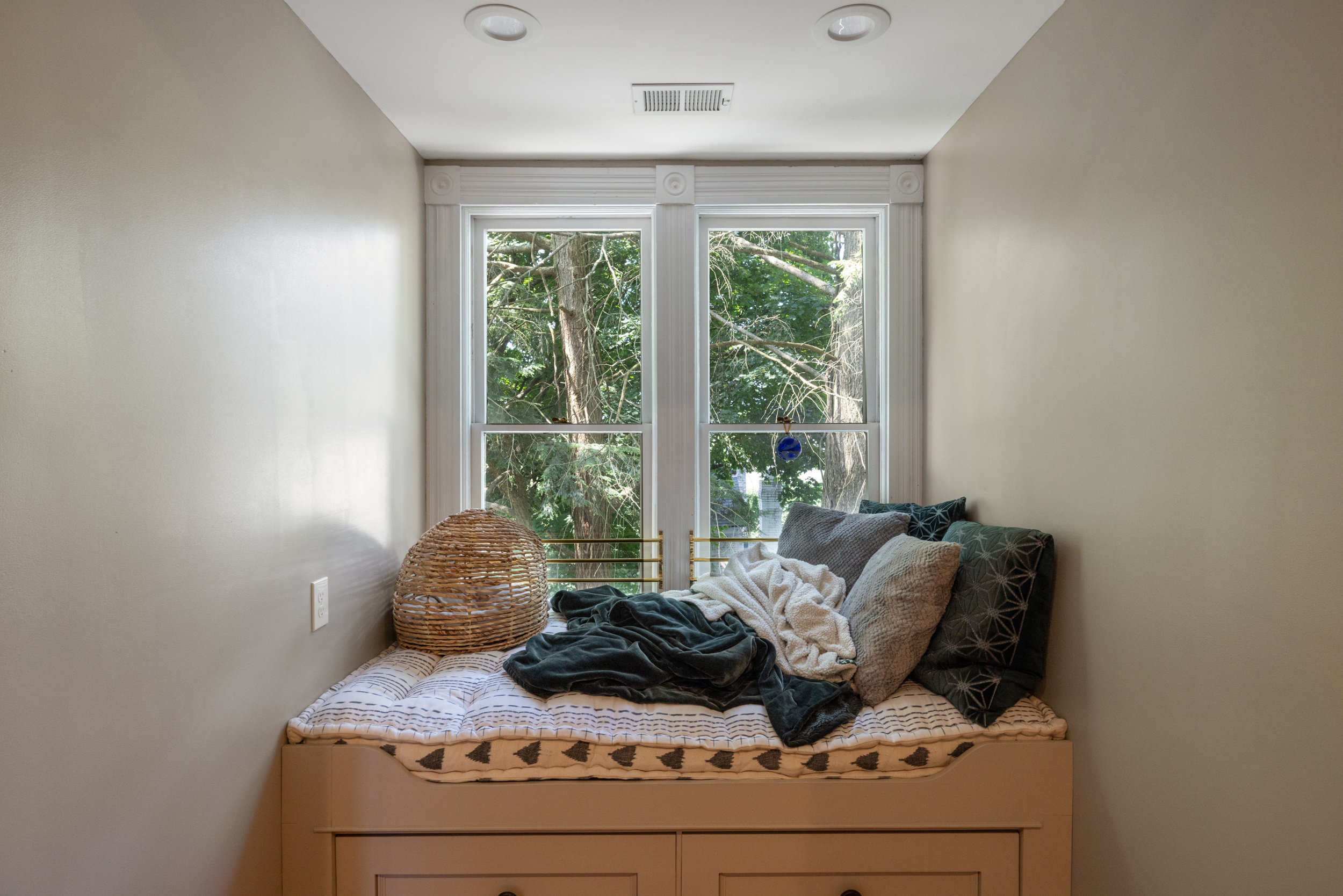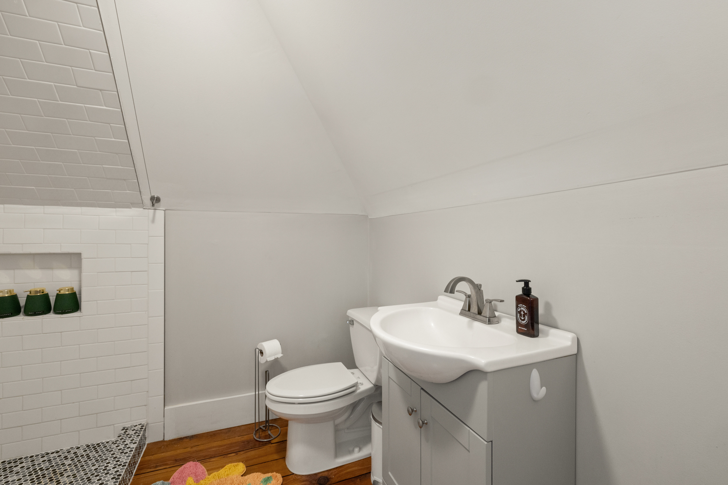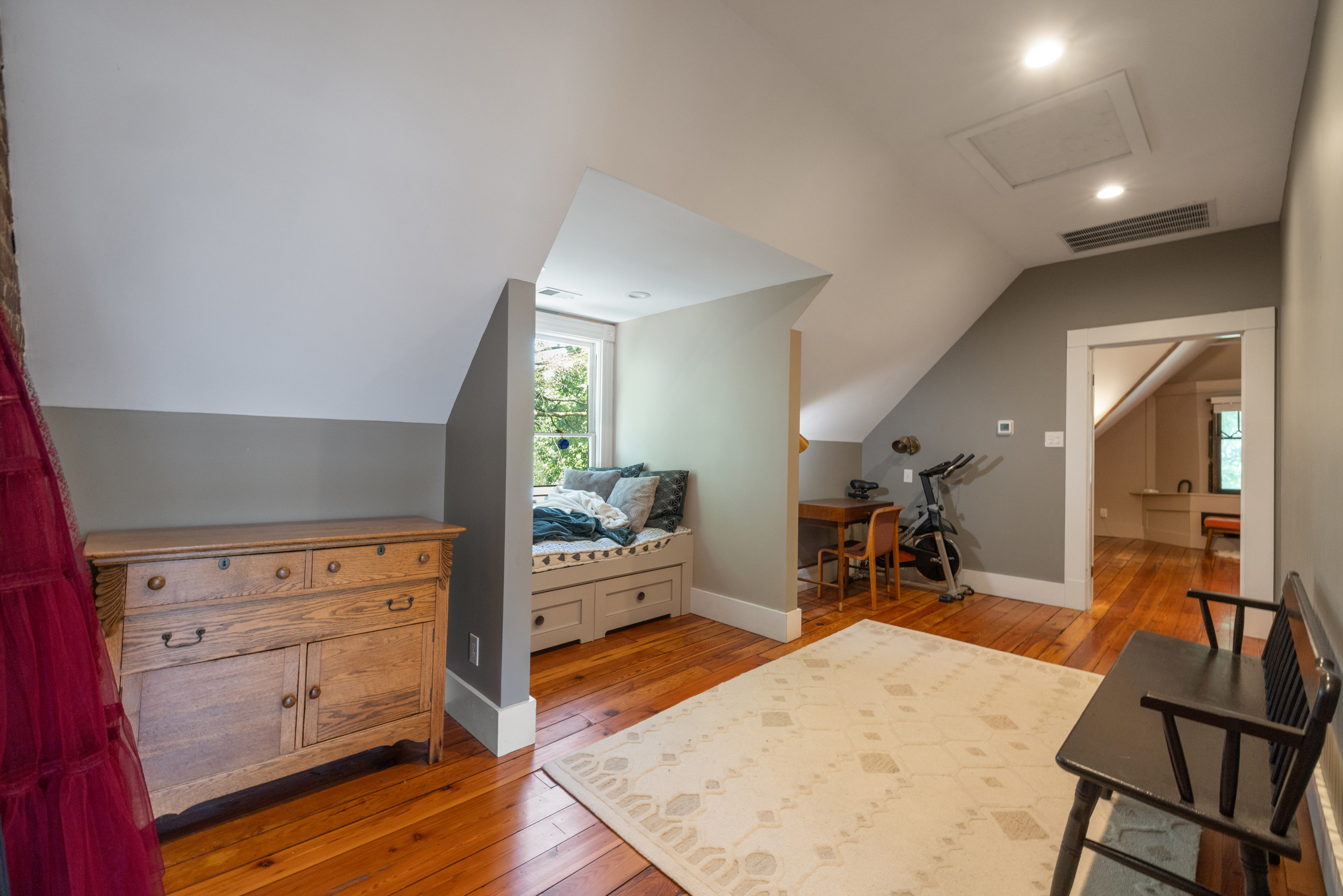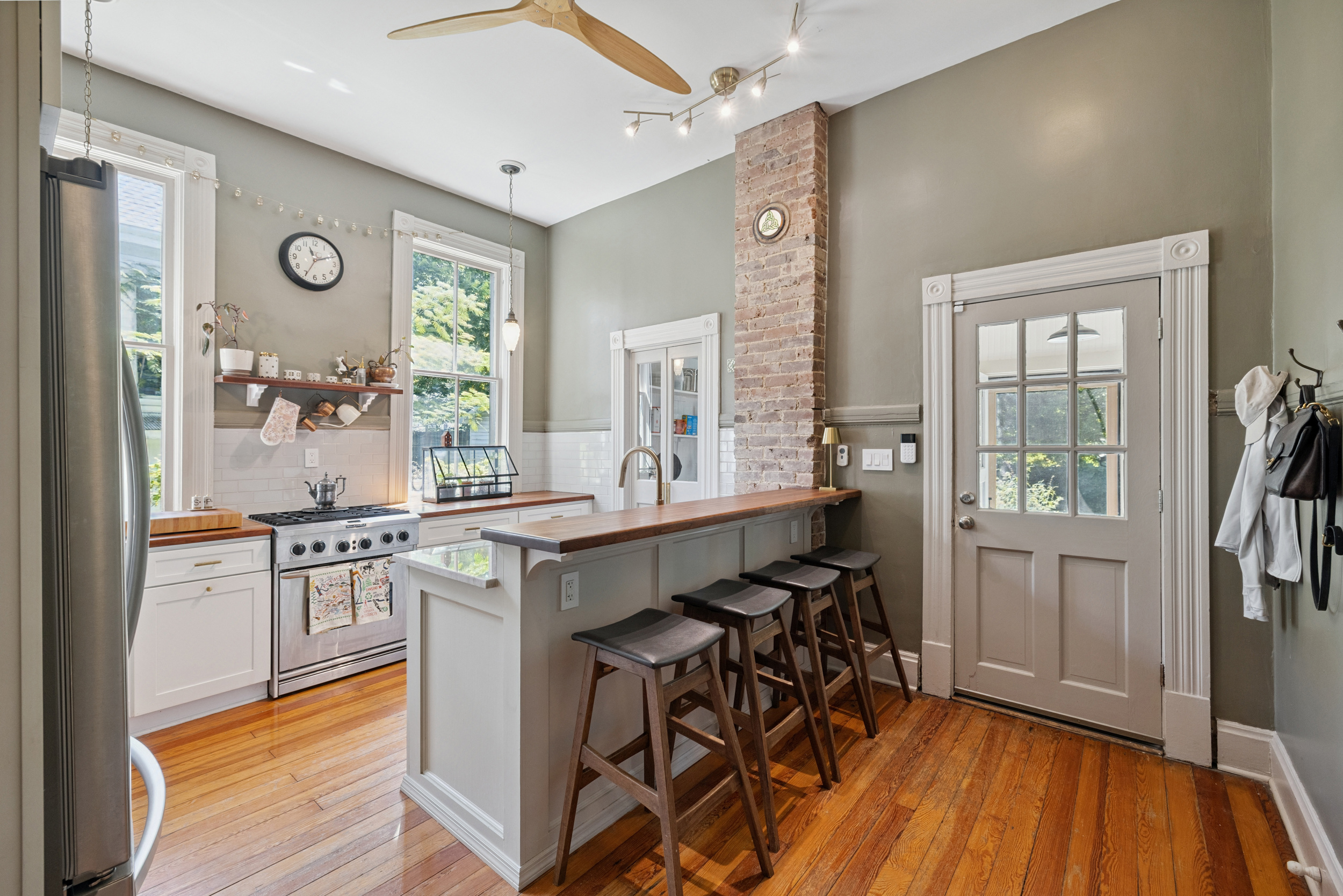 Greeted by a lovely parlor, the large formal living room, dining room & family room (current art studio) beautifully flow together & are the soul of the home while the sunny kitchen with exposed brick is the heart. A 1st floor bedroom could be a wonderful home office adjacent to a full bath. The enclosed porch is the happy spot to start your day overlooking the sweet private backyard. Upstairs discover a lovely sitting area complete with a day bed under the window. The stunning primary bedroom has a walk in closet & its large bathroom has a tub claw bath & walk-in shower. The second bedroom is cozy & has its own en-suite bathroom. There is a convenient utility closet with a washer & dryer as well.